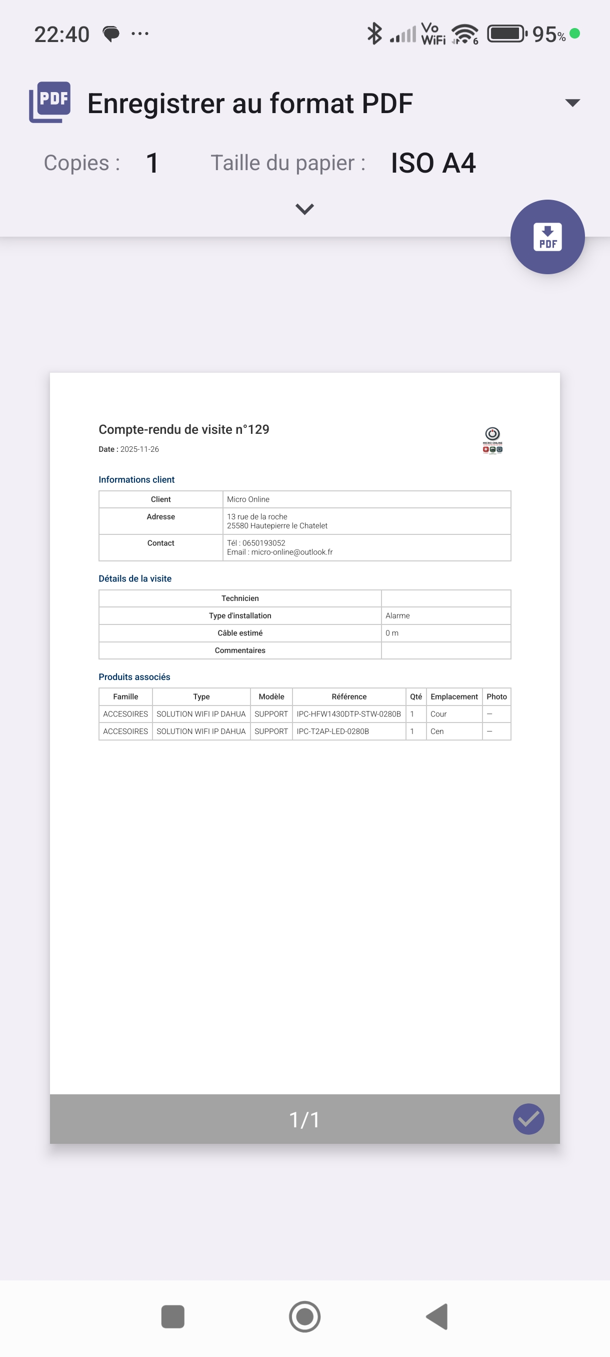 Câble estimé : 0 m